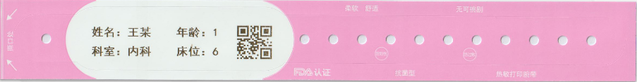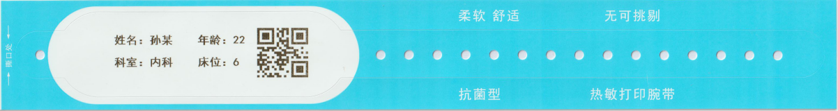 熱敏TPU材質(zhì),防水,防酒精,防轉(zhuǎn)移,抗菌防過敏,柔軟透氣,佩戴舒適,拉伸不變形,不斷裂。可打印數(shù)字、文字、條形碼、二維碼、圖片和圖形,與醫(yī)院HIS系統(tǒng)無縫銜接。